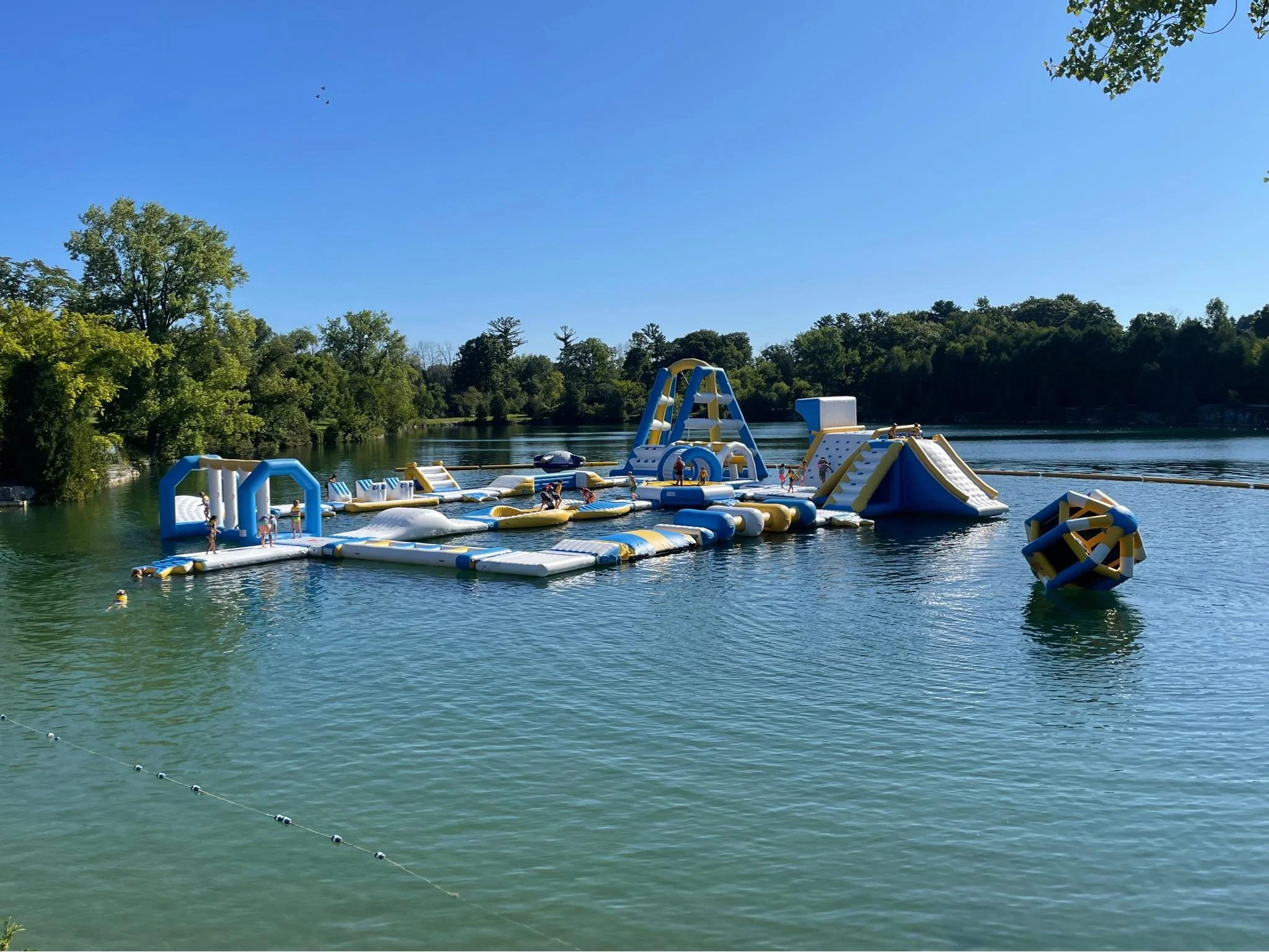 Includes beach pass- all day admission to the beach and shallow section and about a 90 minute session on the inflatable park.